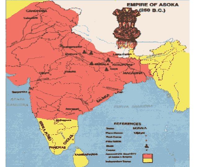 Asoka 272 B. C. E • Asoka conquered the only territory that was not included in the empire- Kalinga • He issued numerous rock edicts placed in various placed in his kingdom • Written in Brahmi script- deciphered by James Princep in 1837 • Converted to Buddhism • 3 rd Buddhist council held at Pataliputra • Buddhist missions to various countries • Greeks, southeast Asia, Tibet • Srilanka- sent his deughter and son as Buddhist missionaries