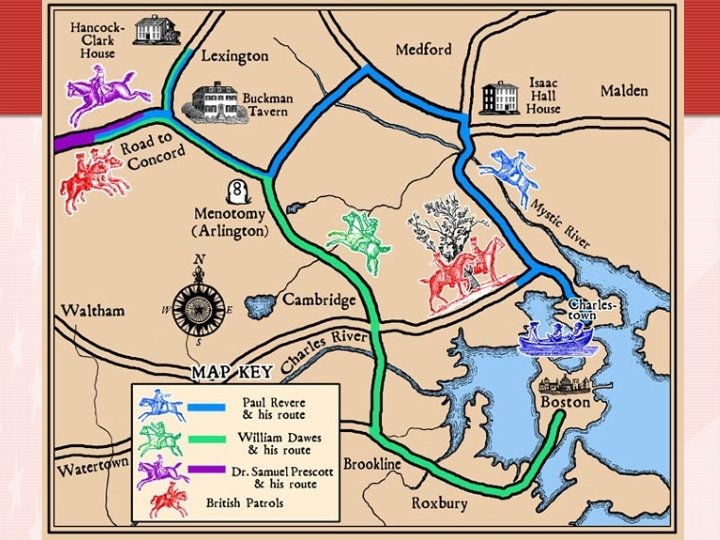 • Revere and others got the lantern signal from the Old North Church • They rode through the countryside yelling “the regulars are coming!” • Revere was captured by British troops and later released