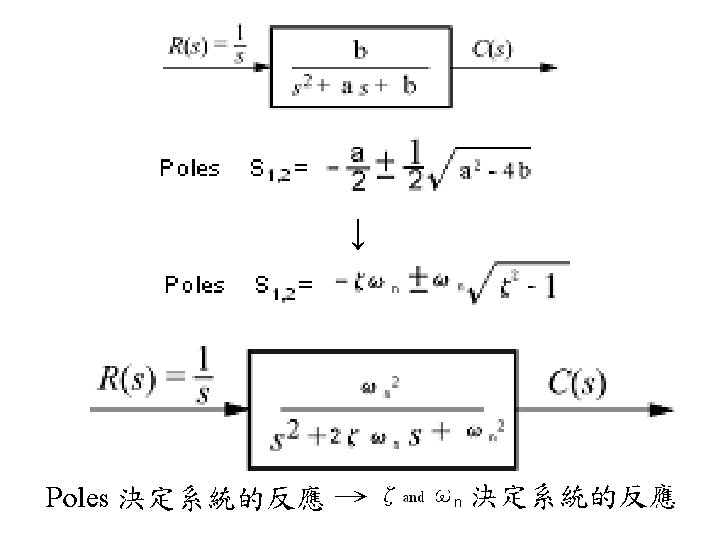 Poles 1. With damping neglected (i. e. a=0) → Poles → ωn = S 1, 2 = ± j S 1, 2 = 不消耗能量系統 =± jωn → ωn 2 = b