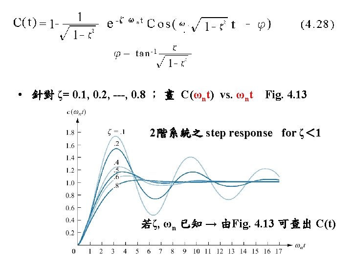 S 1, 2 = ζ值 決定sys response 之類別 i. e. 決定系統特性 ωn 決定振動頻率 Figure 4. 11 Second-order response as a function of damping ratio