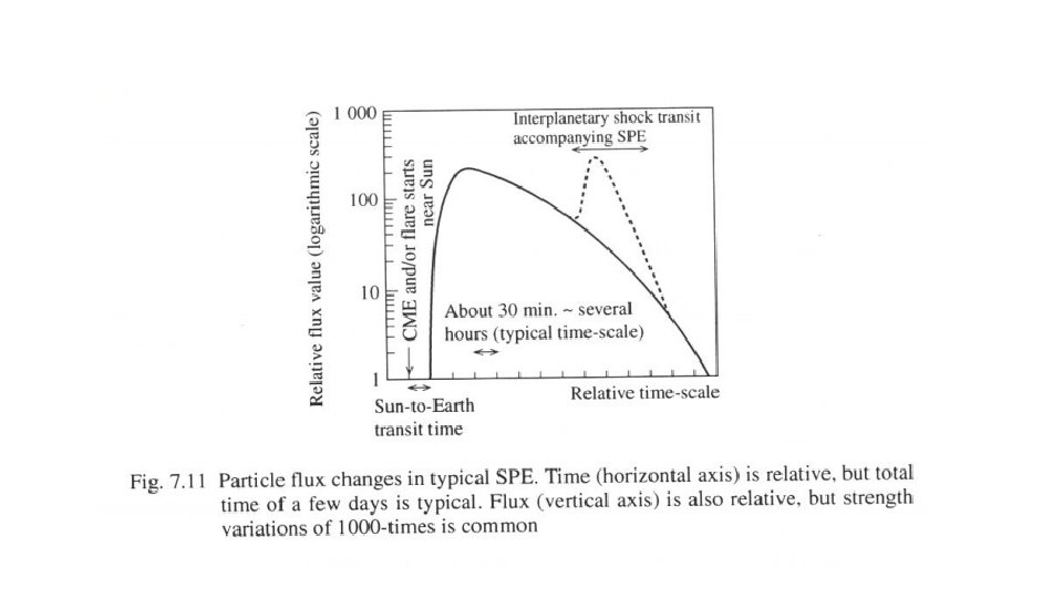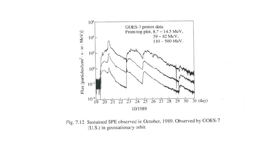 7. 1. 5 Solar Particle Event • SEPS v. s. GCR • The solar phenomena are called solar proton events or solar particle event(SPE). • Proton flux unit (pfu)= 1 particle/cm^2*s*sr --- sr is the steradian(球面度) • solar flux units (s. f. u. ): The solar radio flux at 10. 7 cm (2800 MHz) is an excellent indicator of solar activity.