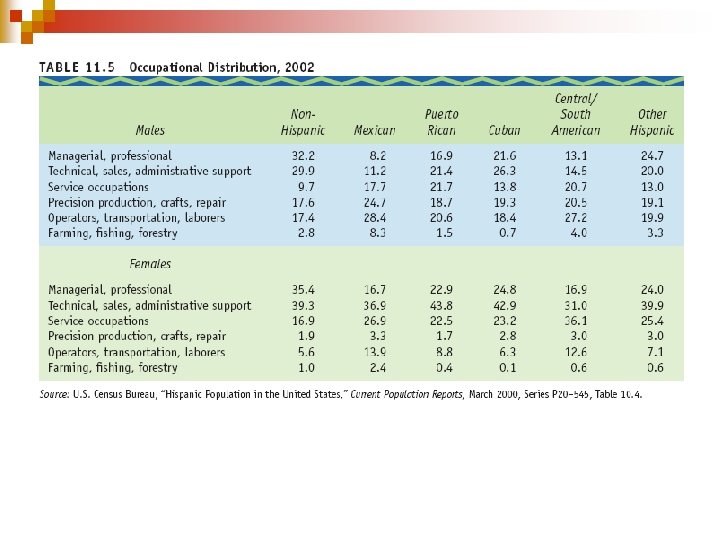 Mexicans and Puerto Ricans: A Comparison n Compared to Mexican Americans, most Puerto Ricans are less likely to have arrived recently, are better education, and speak better English ¨ Employed Puerto Ricans earn more than employed Mexicans n Many factors account for this pattern including the difference in the number of families headed by females