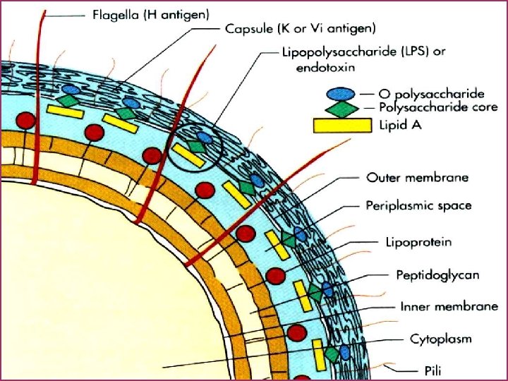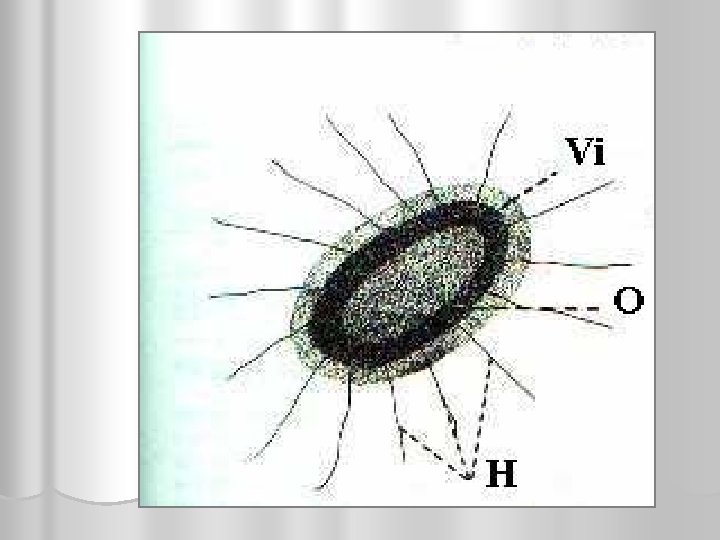 Antigenic structure. S. typhi possesses a flagella H-antigen and thermostable somatic O- and Vi-antigens. All three antigens give rise to the production of specific antibodies in the body, i. e. H-, O-, and Viagglutinins. H-agglutinins bring about a largeflocculent agglutination, while 0 - and Vi-agglutinins produce fine-granular agglutination.