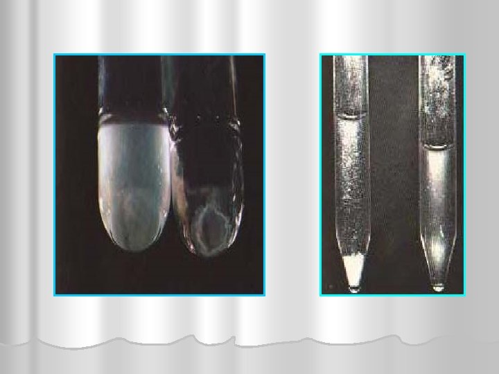 Fermentative properties. “+” -ve test “—” -ve test Positive (left) reactions of isolates E. coli in glucose fermentation broth. Note the formation of acid (yellow color) and gas. Observe the bubble in the Durham tube.