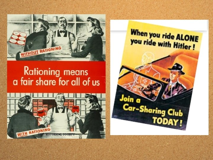 Rationing • Office of Price Administration (OPA) set limits on prices, keeping them managable (slow down the inflation!) • OPA also set up a system where households received rationing coupons (c-books) to be used for buying such scarce goods as meat, shoes, sugar, coffee, and gasoline. • Why would it be important to RATION things like sugar and gasoline during war?