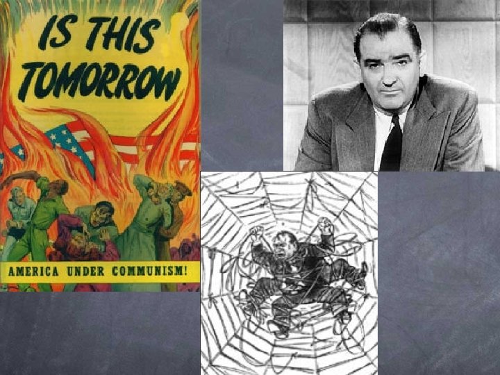 Mc. Carthyism • Senator Joseph Mc. Carthy (Wisconsin) brought the issue of anti-communism to America’s front pages and living rooms • Stirs up a whirlwind fever – claiming to have a list of 57 (no 81, no 205!) communists working in the US State Department – Accused Democrats of being soft on communism • Televised bullying of US Army led to his discredit and downfall