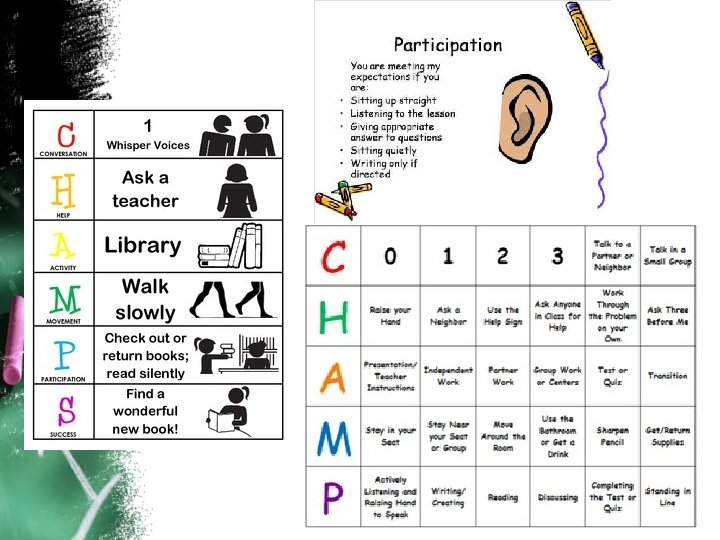 Use CHAMPS book Chapter 4 (Sprick, 2009) to create and communicate expectations.