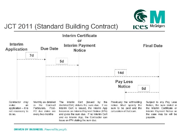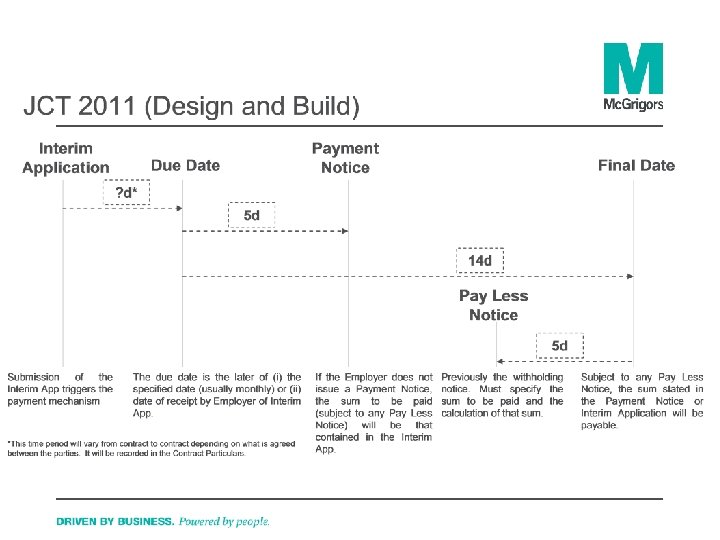 Payment “construction contracts” entered into on 1 October 2011 and onwards…. . Valuation 28 d 7 d Due Date 5 d 17 d 19 d Payment Notice Final Date 2 d 7 d Pay Less Notice Default Notice [8260131_1] © Mc. Grigors LLP 2010 10
