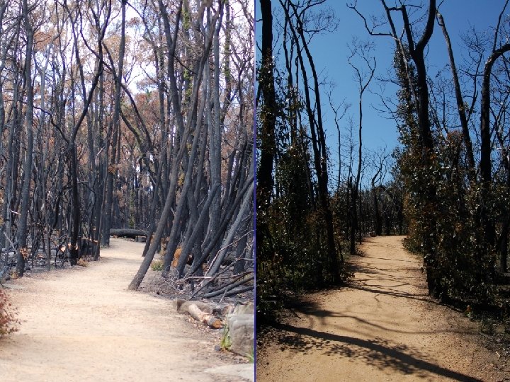 Natural agents of change Fire 2003 Canberra § Vegetative reproducers – Regrow from buds under bark or underground stems § Rhizomes - Bracken § Epicormic shoots – Eucalyptus (bark burns poorly. Epicormic buds are dormant until fire) § Lignotubers – Gums (Underground stems)