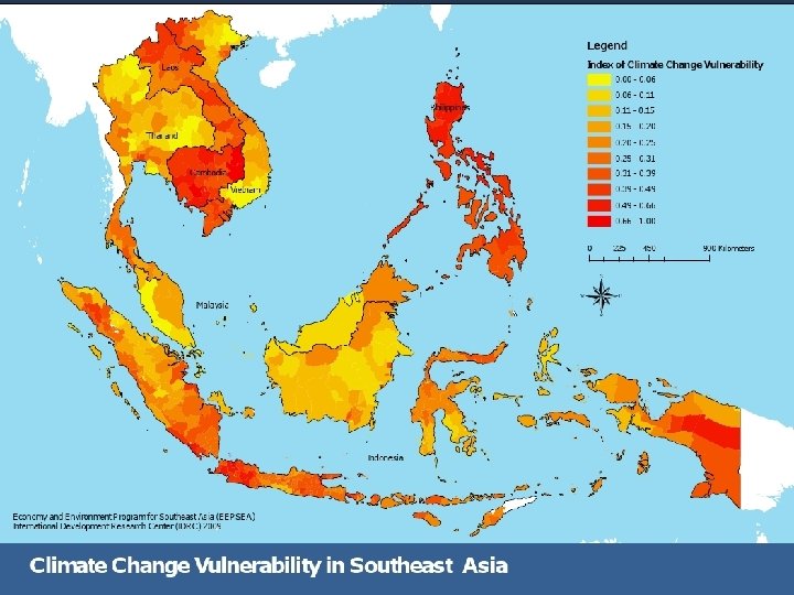 Vulnerability from Climate Change n Climate change causes many disasters n The worst affected group is the farmers n Shortage of land areas for agriculture due to increased aridity and associated salinity, groundwater depletion and the rise of sea level