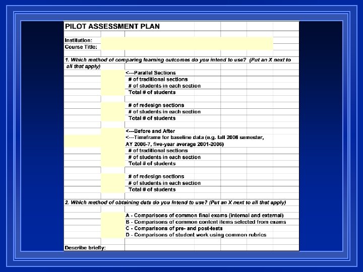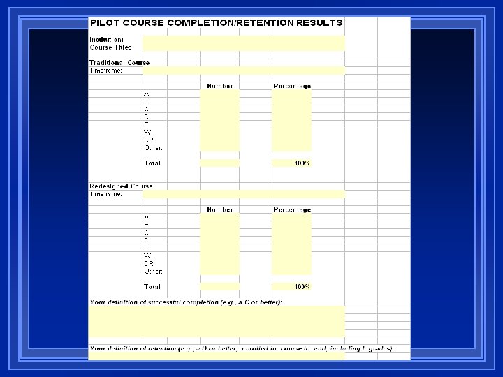 SCOPE OF EFFORT COMPARISON A worksheet that enables institutions to compare the “before” activities (the traditional course) and the “after” activities (the redesigned course)