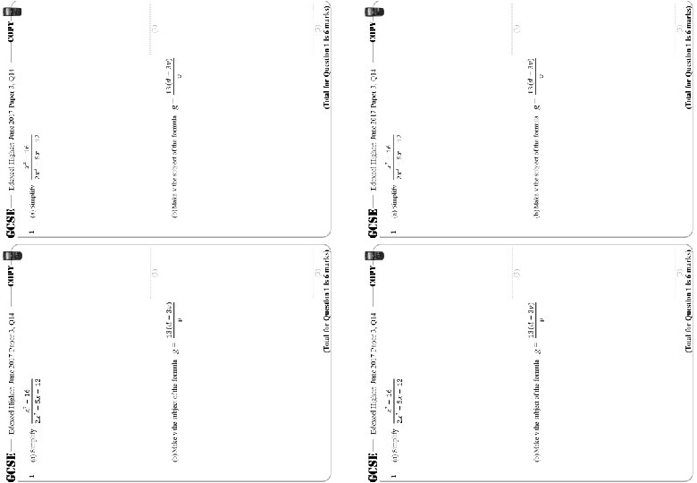 Changing the Subject of a Formula – With Factorisation – Higher – GCSE Questions These questions are the same format as previous GCSE exams. COPY means they use the exact same numbers as the original GCSE question. Otherwise, they are clone questions using different numbers. The worksheets are provided in a variety of sizes.