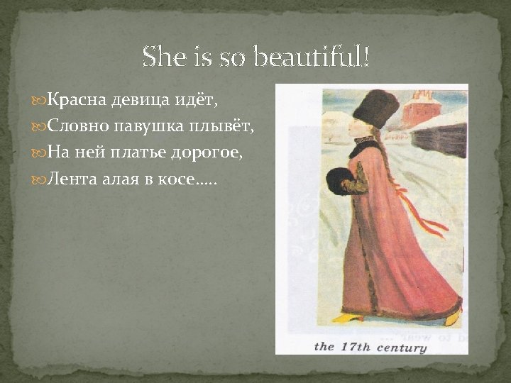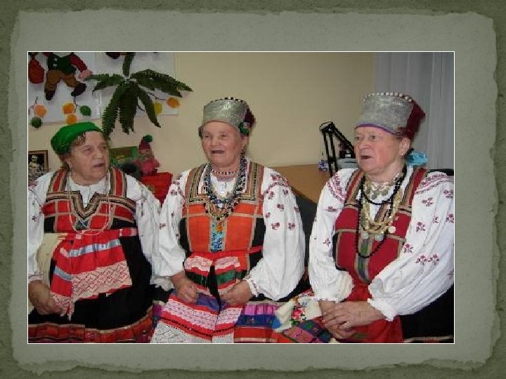 The folk costume in Russia has a long history. The woman is dressed in a cloth coat and a long woolen skirt. She wears varezhki and valenki. She has a kokoshnik and a shawl on her head. The man is dressed in a warm belted coat, a furcap and lapti. The woman is dressed in a holiday long-sleeved shirt and a long skirt. She is wearing a kokoshnik decorated with embroidery. She is wearing a necklace and earrings. The man is wearing a long white kaftan with embroidery on the sleeves, stripped pants and lapti. He has a hat on his head and a fishing rod.