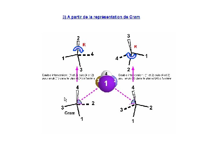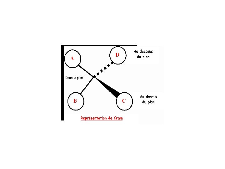 REPRESENTATION DE CRAM Conventions utilisées : Les liaisons dans le plan du papier sont représentées par des traits simples. Les liaisons en avant du plan du papier sont représentées par des traits gras. Les liaisons en arrière du plan du papier sont représentées par des traits pointillés. Remarque : Dans ce cours les liaisons en avant du plan seront parfois représentées par un " trait triangulaire " non rempli pour économie d’encre.