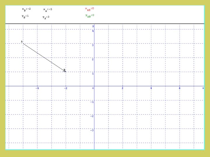 IV. Distance entre 2 points dans un repère. Si le repère est orthonormé Les droites (AC) et ( CB) sont parallèles aux axes, donc perpendiculaires entre elles. Le Triangle ABC est rectangle en C et le théorème de Pythagore permet d ’écrire: B y. B AB² = AC² + CB² AB²= ( x. B - x. A )² + ( y. B - y. A)² y. B - y. A A C y. A 1 O 1 x. A x. B - x. A