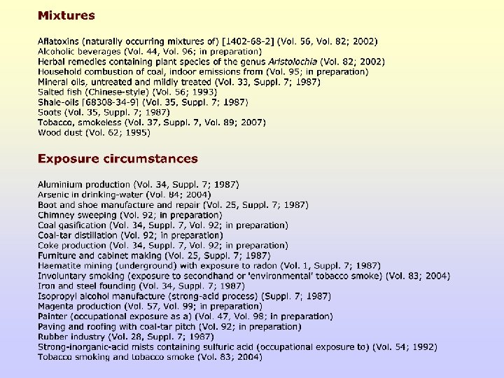 Classification par l’IARC – OMS (iarc. fr) Groupe 1 : L’agent (ou le mélange) est cancérogène pour l’homme. si on dispose de preuves suffisantes chez l’homme. Exceptionnellement : preuves suffisantes chez l’animal + fortes présomptions chez l’homme (similitudes dans les mécanismes de formation de tumeurs).