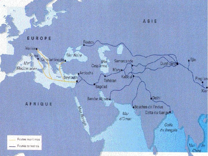 NIVEAU POLITIQUE : • En Europe de l’Ouest, plusieurs guerres amènent une centralisation des pouvoirs par les rois. • Les rois perçoivent des impôts. • Invasion de Constantinople par les Turcs au 15 e siècle : cela entraîne le “blocage” de la route du commerce avec l’Asie (p. 70 guide).