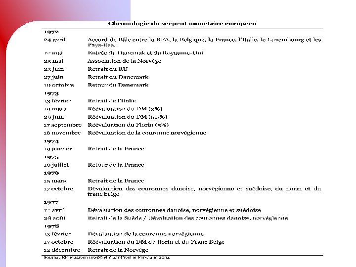 L’échec du serpent • Défaillance du SMI (retour au change flottants en 1973) • La politique de benign neglet (indifférence bienveillante) des autorités monétaires américaines • Forte asymétrie du serpent • Différence des choix politiques au lendemain du choc pétrolier
