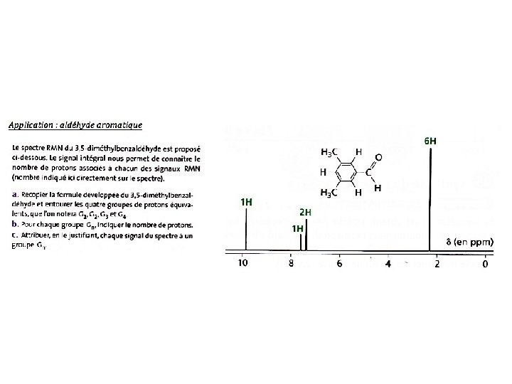 Exemple: a Ethanal b a a R-CO-H 9, 8 ppm CH 3 -CHO 2, 1 ppm