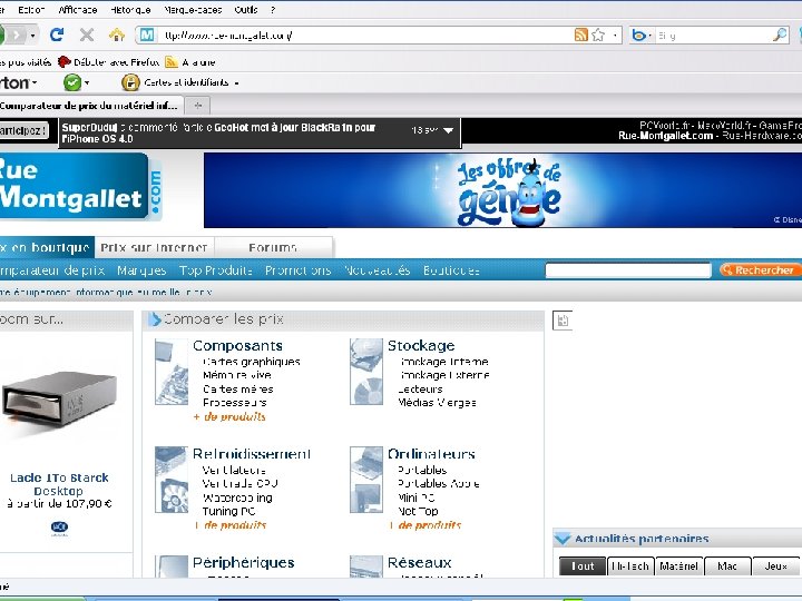 Les comparateurs de prix (shop bots) • Les comparateurs de prix : sites web basés sur un moteur de recherche. A partir de critères précis, ces sites prospectent automatiquement les sites marchands pour proposer une synthèse des prix d’un produit donné. • Approcher les conditions de la concurrence pure et parfaite en supprimant l’asymétrie d'information. • Types des comparateurs de prix : - Comparateurs de prix généraliste :