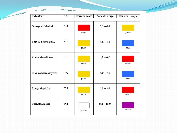 Choix d’un indicateur coloré
