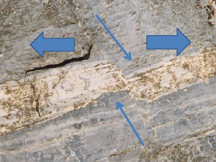 b 2) Un événement tectonique (déformation des roches) : Une faille, un pli ou un charriage qui déforment une roche sont des événements postérieurs à la formation de cette roche. Ces déformations sont dues aux fortes pressions que subissent les roches sous l’effet du déplacement des plaques tectoniques.