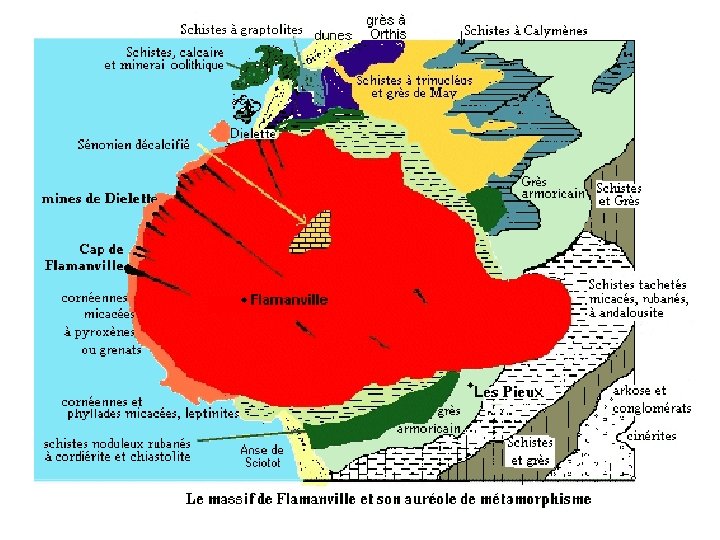 b 3) Un événement magmatique ou métamorphique Des roches peuvent être coupées par un filon ou par un massif intrusif (ou pluton) ou par une auréole de métamorphisme.