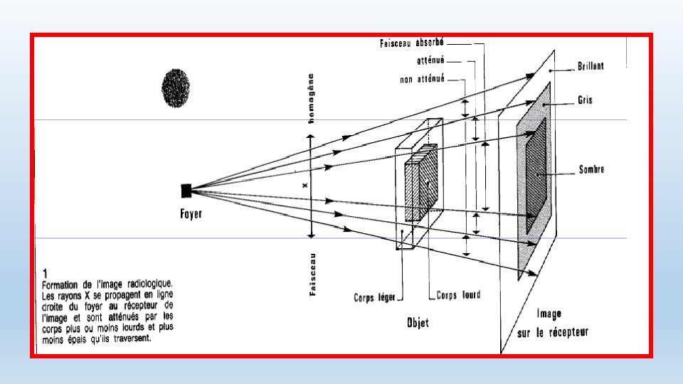 Rayonnement X Il est désigné par une image radiante (virtuelle) et qui sera traduite sur le détecteur par une image radiologique.