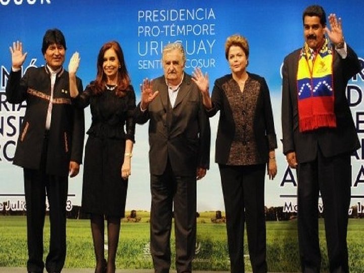 Le MERCOSUR Le Marché commun du Sud, le Mercosur (de l‘espagnol Mercado Común del Sur), est une communauté économique qui regroupe l'Argentine, le Brésil, l'Uruguay, le Paraguay (actuellement suspendu) et le Venezuela (depuis 2012). Le processus d’adhésion de la Bolivie est en cours. Il y a également des pays associés, à savoir le Chili, la Colombie, le Pérou ou l’Équateur. .