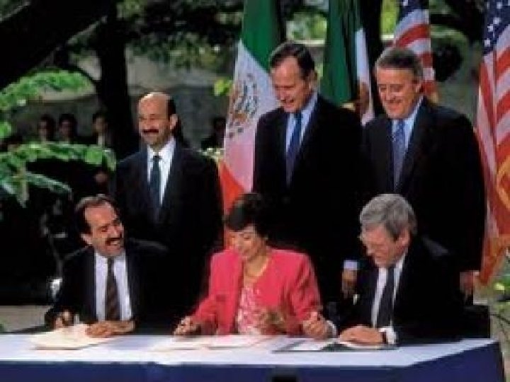 L’ALENA ou NAFTA L'Accord de libre-échange nord-américain (ALENA), le North American Free Trade Agreement (N. A. F. T. A) ou Tratado de libre. Comercio de América del Norte (TLCAN), a été conclu et signé par les présidents américain George H. Walker BUSH, canadien Brian MULRONEY et mexicain Carlos SALINAS, en décembre 1992, à San Antonio au Texas. L’ALENA est entré en vigueur le 1 er janvier 1994.