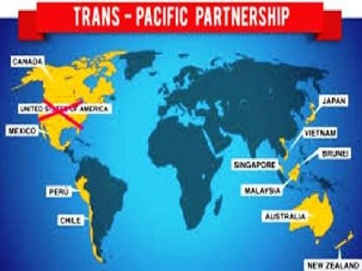 En janvier 2017, le nouveau président américain, Donald TRUMP, annonce le retrait des Etats-Unis de l’accord. Les 11 autres pays membres décident de pooursuivre et de donner naissance a un nouvel accord, sans les Etats-Unis, qu’ils nomment l’Accord de Partenariat Transpacifique Global et Progressiste.