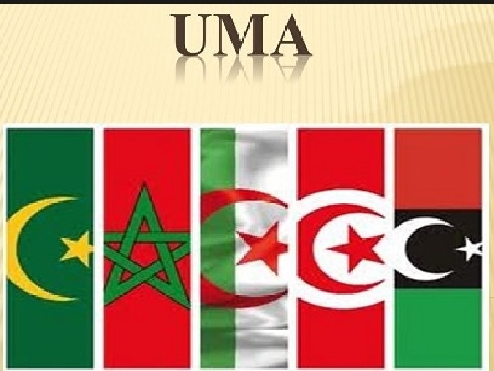 L’Union du Maghreb Arabe, UMA un espoir avorté • L'UMA a été fondée le 17 février 1989, date à laquelle le Traité constitutif a été signé par les Cinq Chefs d'Etats à Marrakech. • L'UMA désigne l'organisation économique et politique formée par l'Algérie, la Libye, le Maroc, la Tunisie ainsi que la Mauritanie — et dont le siège du secrétariat général est situé à Rabat. La population totale des États membres s'élevait à 90 344 000 habitants en 2012. • L’UMA est à l'évidence une réalisation géostratégique importante. Dans les faits, elle n'a pas d’existence effective. L'UMA reste prisonnière des différends entre chacun des pays, en particulier le différent Maroco-Algérien.