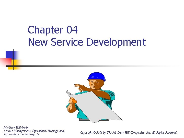 Chapter 04 New Service Development Mc. Graw-Hill/Irwin Service Management: Operations, Strategy, and Information Technology, 6 e Copyright © 2008 by The Mc. Graw-Hill Companies, Inc. All Rights Reserved.