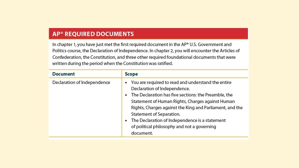 Section 1. 2 The Declaration of Independence • Jefferson’s arguments: – British government no longer legitimate – Inalienable rights were denied to citizens • “Life, Liberty, pursuit of Happiness” - should be self-evident under the law of nature – Long list of grievances against King of England • No representation, justice obstructed, standing armies threatened, unfair taxes imposed