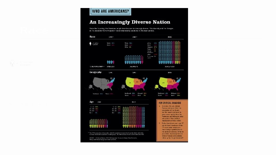 Who Are Americans? The Twenty-First Century Our current population By 1965, Congress had lifted strict immigration limits. • This resulted in new waves of immigration from Asia and Latin America. • Current population (U. S. Census) • White: about 61 percent of the population • Asian: 5 percent • Black/African American: 13 percent • Latino/Hispanic: 18 percent