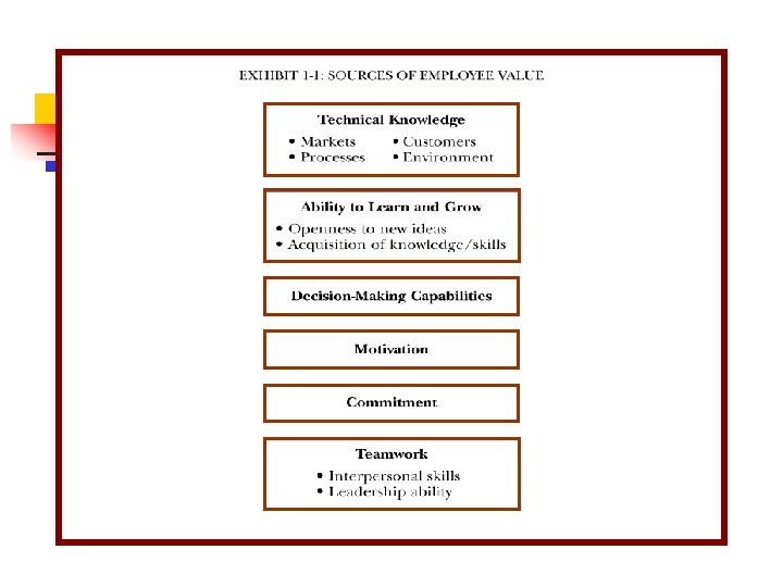 The Strategic View of Human Resources n n n Employees are human assets that increase in value to the organization and the marketplace when investments of appropriate policies and programs are applied. Effective organizations recognize that their employees do have value, much as same as the organization’s physical and capital assets have value. Employees are a valuable source of sustainable competitive advantage.