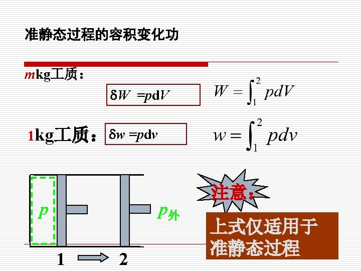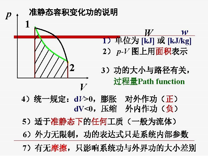 p 示功图indicator (p-V) diagram 1. W mkg 质: . W =pd. V 2 V p 1 kg 质: p外 1 2 w =pdv