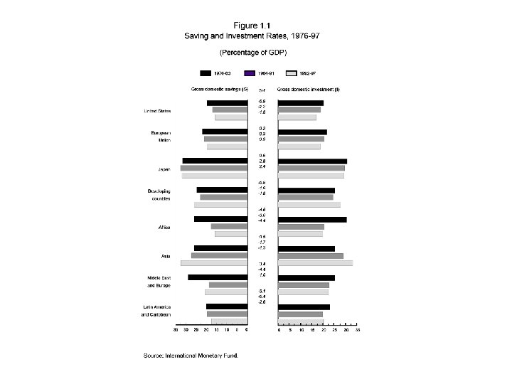 l l l Basic facts (Figure 1. 1): Gross domestic saving rates in developing countries are higher than the rates in industrial countries (highest in Asia). Investment rate follows similar pattern (highest in Asia). Foreign saving is particularly large in Sub-Saharan Africa.