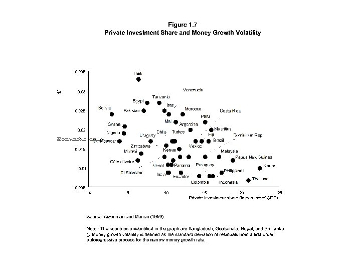 Other Empirical Studies l l l Servén (1997, 1998): robust negative effect of macroeconomic uncertainty on investment, particularly when uncertainty is measured by the real exchange rate. Aizenman and Marion (1999): negative relationship between investment and macroeconomic volatility measures (government consumption as a share of output, nominal money growth and real exchange rate). Figure 1. 7.