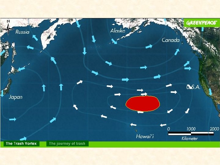 The Ocean’s Garbage Patches • Charles Moore founded the Algalita Foundation in 1998 after sailing a catamaran from Hawaii, which took him through the Great Pacific Gyre v v “It began with a line of plastic bags ghosting the surface, followed by an ugly tangle of junk: nets and ropes and bottles, motor-oil jugs and cracked bath toys, a mangled tarp. Tires. A traffic cone. Moore could not believe his eyes. Out here in this desolate place, the water was a stew of plastic crap. ” There is 6 times more plastic than plankton in this area, which is more twice the size of Texas