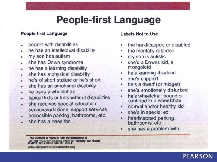 Getting Oriented to Exceptionality and Special Education There is no single theory of normal development, so few definite statements can be made about exceptional learners. § The importance of abilities § Disability versus handicap § Disability versus inability Hallahan, Kauffman, & Pullen. Exceptional Learners: An Introduction to Special Education, Thirteenth Edition. © 2014, 2012, 2009, 2006 by Pearson Education, Inc. All rights reserved. 2