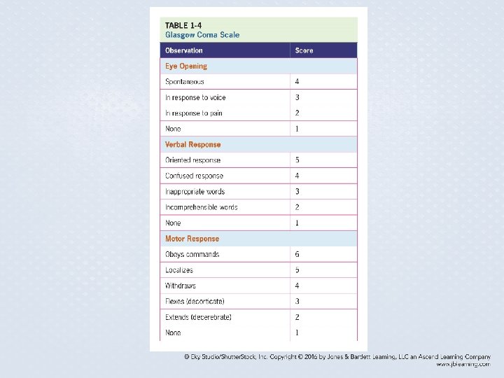 The Neurologic System • Glasgow Coma Scale used for an alteration in the level of consciousness because of trauma or some other hypoxic or metabolic event • Other indications of neurologic integrity are normality and equality of strength in all extremities.