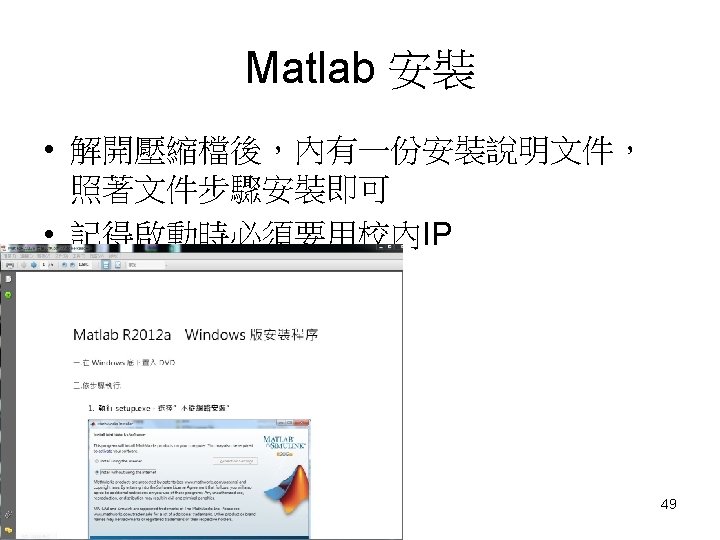 Matlab 軟體安裝 師大校園軟體服務(http: //www. itc. ntnu. edu. tw/sw/index. html) 48
