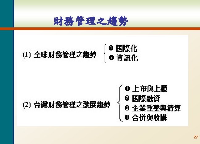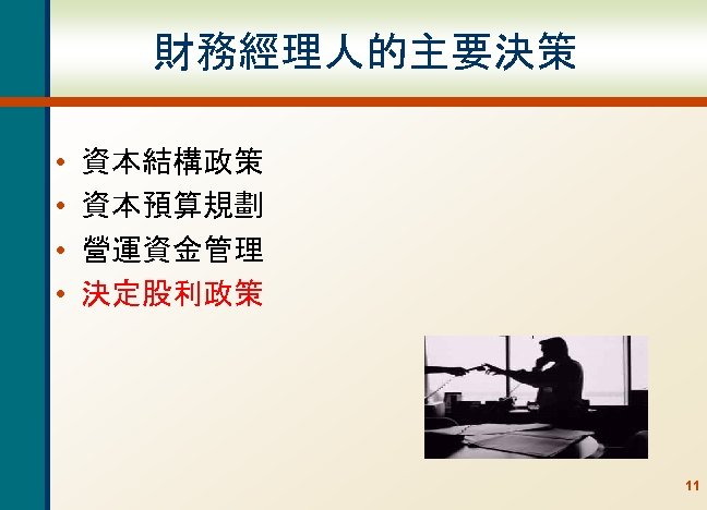 Chapter Outline • • • Corporate Finance and the Financial Manager Forms of Business Organization The Goal of Financial Management The Agency Problem and Control of the Corporation Financial Markets and the Corporation 2