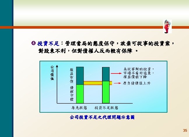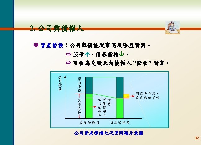 The Agency Problem • Agency relationship • Principal hires an agent to represent his/her interest • Stockholders (principals) hire managers (agents) to run the company • Agency problem • Conflict of interest between principal and agent • Management goals and agency costs 21