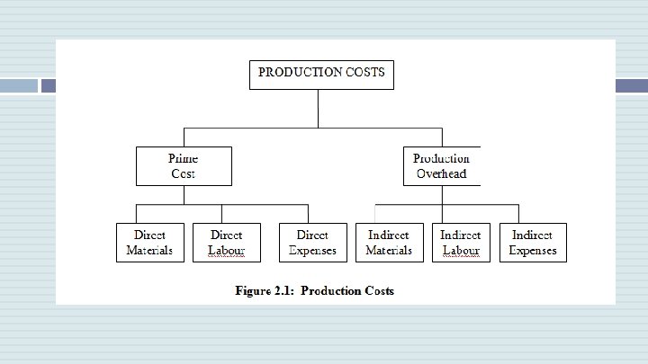 THE ELEMENTS OF COST AND ITS CLASSIFICATION The elements of cost consist of: Direct materials Direct wages Direct expenses Overhead � � � Production Administration Selling and distribution