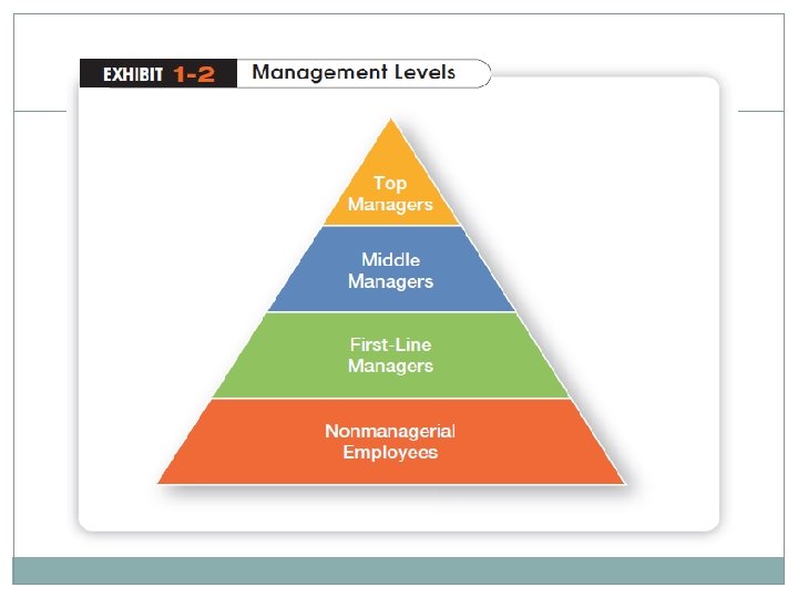 Management Skills • Three basic kinds of skills 1. Technical Skill - is the ability to use procedures, techniques and knowledge of a specialized field. E. g. surgeon, engineers, accountants. 2. Human Skill – is the ability to work with, understand, and motivate other people as individuals or in groups. 3. Conceptual Skill – is the ability to coordinate and integrate the organization goals and activities.