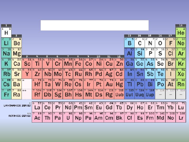 Groups and Periods Group: • Vertical column • Elements with similar chemical properties Period: • Horizontal row • Physical and chemical properties change regularly across a period