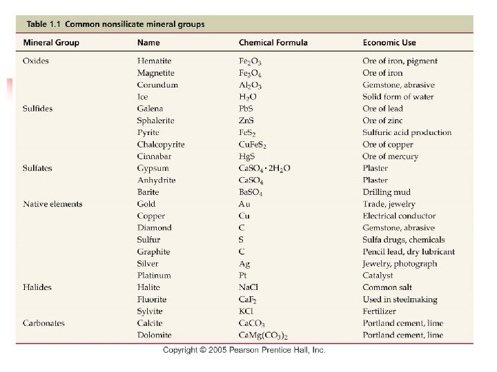 Nonsilicate Mineral Groups n Important nonsilicate minerals Comprise only 8% of Earth’s crust n Often occur as constituents in sedimentary rocks n