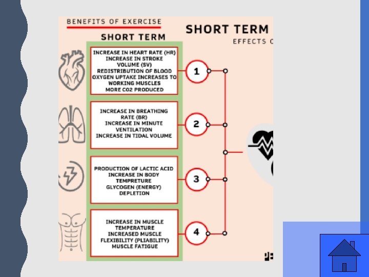 Energy Supply – 400 Points Provide 4 short term effects of exercise on the body, along with descriptions